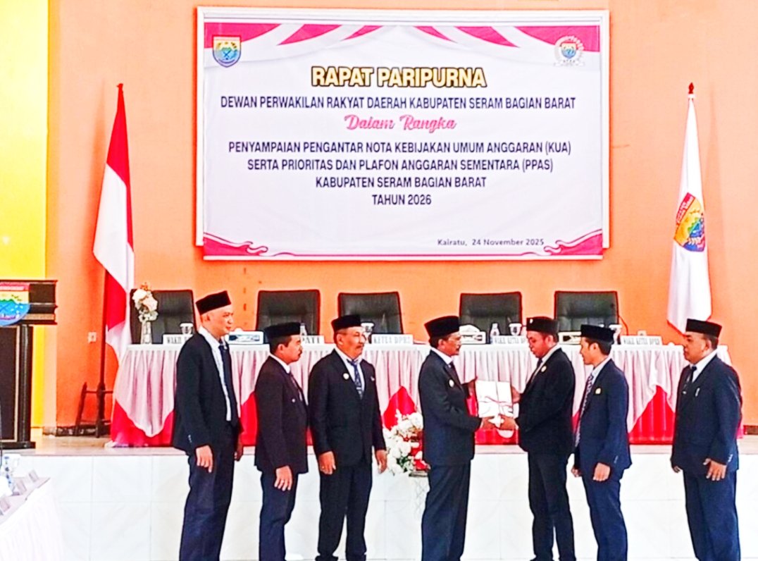 Lensa Baru.Com.Piru Sera Bagian Barat-Pemerintah Kabupaten Seram Bagian Barat (SBB) kembali menunjukkan komitmennya dalam memperkuat tata kelola dan perencanaan pembangunan daerah melalui pelaksanaan Rapat Paripurna Penyampaian Kebijakan Umum Anggaran (KUA) serta Prioritas dan Plafon Anggaran Sementara (PPAS) Tahun Anggaran 2026, yang dipimpin langsung oleh Ketua DPRD SBB, Andrias Hengky Kolly.